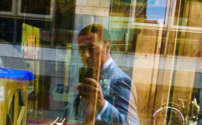 Spürt er den Flügelschlag jener Taube, die soeben das nachbarliche Haus als Platz zum Verweilen erkor?